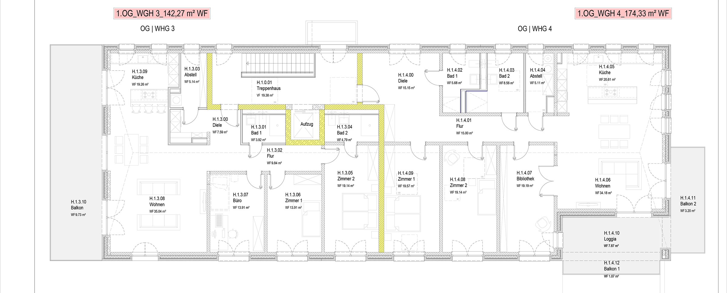 Loggien werden zu 50%, Balkone und Terrassenflächen nur zu 25% in die Gesamtfläche eingerechnet (nach WoFlV 2003).